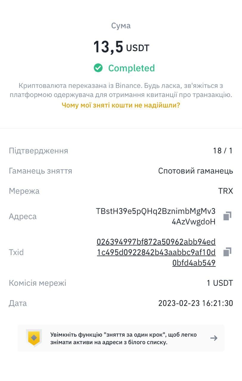 Сумма перевода: 18,5 USDT
