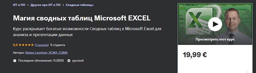 Скачать курс [Udemy] [Алексей Леонтьев] Магия сводных таблиц Microsoft Excel (2024):